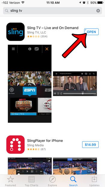 Stap 5: Tik op deOpenzodra de Sling TV klaar is met downloaden en installeren.