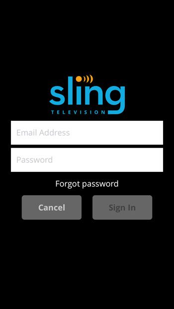 - Voer het e-mailadres en wachtwoord voor uw Sling TV-account in.