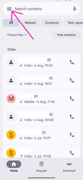 De startpagina van debeschikt nu over een samengevoegde pagina 'Favorieten' en 'Recent'. Het belpictogram dat vroeger rechtsonder in het scherm zweefde, is nu verplaatst naar het onderste menu. Het voegt zich bij de tabbladen ‘Thuis’ en ‘Voicemail’. Als je door je opgeslagen contacten wilt bladeren, moet je op de zoekbalk bovenaan de pagina tikken, of op het handige ‘Contacten bekijken’ eronder klikken. De verandering die de meeste gebruikers echter met ontsteltenis heeft achtergelaten, is de schuifregelaar voor inkomende oproepen. In plaats van op een knop te tikken, moet u het oproeppictogram naar links of rechts schuiven om de oproep te weigeren of te beantwoorden.