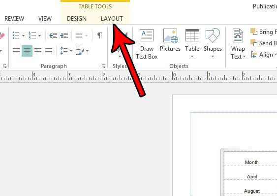 Maar als u de rasterlijnen niet nodig heeft en vindt dat ze afleiden, dan kunt u de stappen in onze onderstaande tutorial volgen om rasterlijnen in een Publisher-tabel te verbergen.
