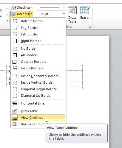 Er is een verschil tussen randen en rasterlijnen als je het over tabellen hebt in Microsoft Word 2010.