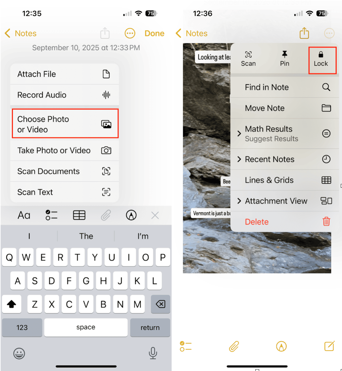 Je kunt ook de Notes-app gebruiken om bepaalde video's privé te houden. Het nadeel van het gebruik van Notes is dat nadat je je video in een vergrendelde notitie hebt beveiligd, je de originele video uit je fotobibliotheek moet verwijderen. Zo gaat het: