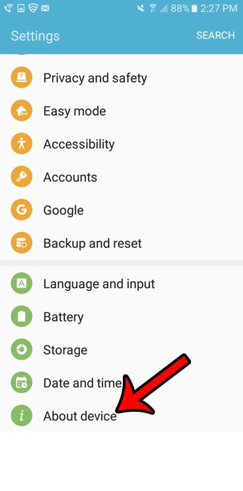 Stap 3: Blader naar de onderkant van het menu en tik opOver apparaatknop.