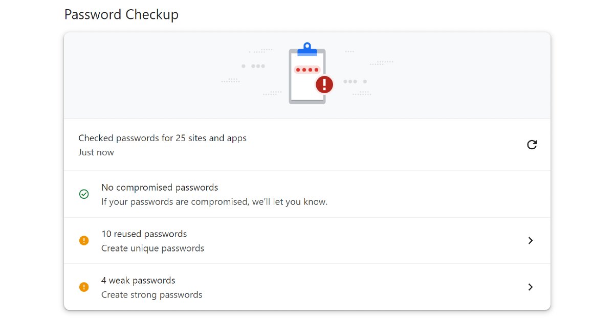 De controletool in Google Wachtwoordmanager zoekt naar drie belangrijke waarschuwingssignalen: