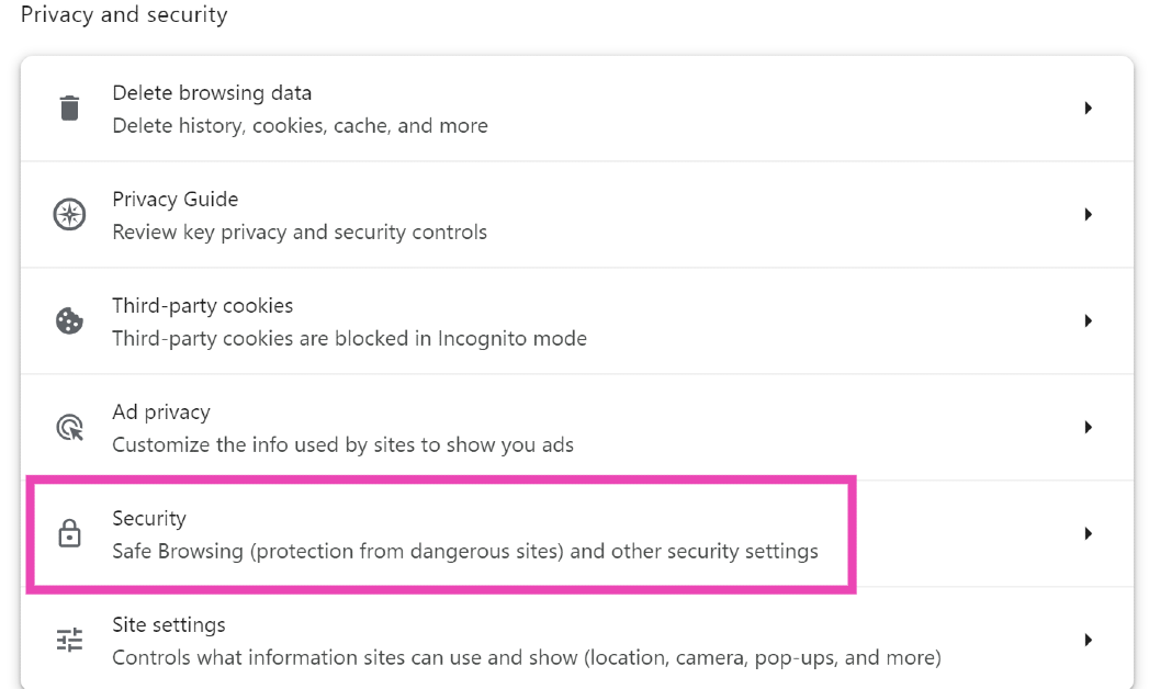 Stap 2:SelecteerPrivacy en veiligheidvanuit de zijbalk.