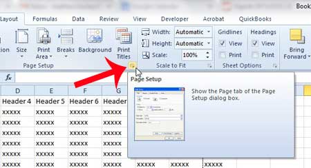 De rij- en kolomkoppen die deze methode afdrukt, zijn de cijfers en letters bovenaan en links van het werkblad. Nadat u de onderstaande stappen heeft gevolgd, kunt u op de knop Afdrukvoorbeeld klikken om te zien hoe het werkblad eruit zal zien als het wordt afgedrukt.