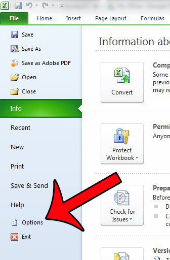 Stap 3: KlikOptiesin de kolom aan de linkerkant van het venster, waardoor een nieuw venster wordt geopendExcel-optiesraam.