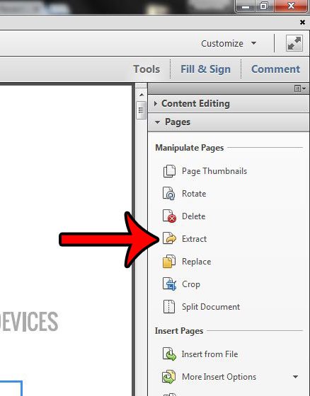 Met Adobe Acrobat 11 Pro kunt u deze actie uitvoeren met behulp van deExtracthulpmiddel. Onze onderstaande tutorial laat u zien waar u deze optie kunt vinden, zodat u voor elke pagina van uw PDF-document een nieuw, afzonderlijk bestand kunt maken.