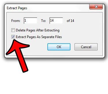 Stap 6: Vink het vakje links van dePagina's uitpakken als afzonderlijke bestandenoptie om elke pagina als een eigen bestand op te slaan. Klik op deOKknop om door te gaan.