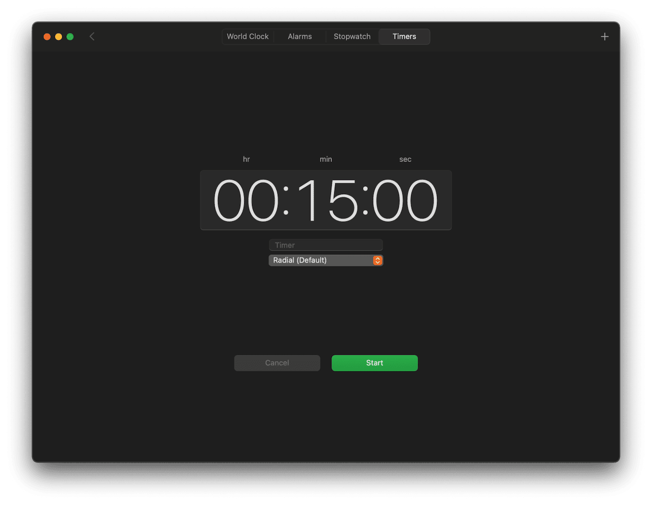 - Stel uw gewenste tijd en waarschuwing in. Klik op Start.