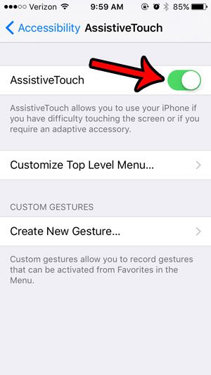 Selecteer de AssistiveTouch-optieStap 5: Tik op de knop rechts vanAssistiveTouchom het aan te zetten.