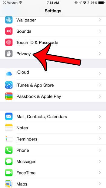 Stap 2: Scroll naar beneden en selecteer dePrivacyoptie.