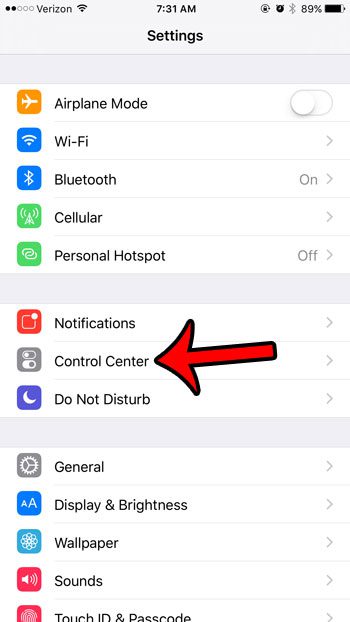 Stap 2: Tik op deControlecentrumoptie.