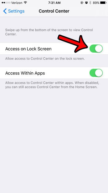 Stap 3: Tik op de knop rechts vanToegang op vergrendelschermom het aan te zetten.