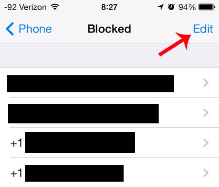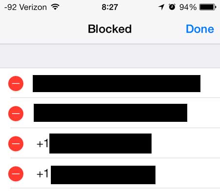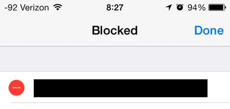 Stap 5: Raak de rode stip aan met het min -pictogram links van het telefoonnummer of contactnaam die u wilt deblokkeren.