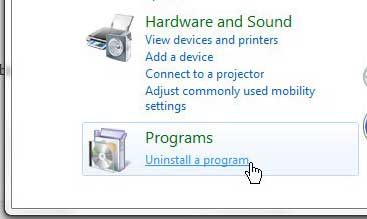 Stap 2: Klik op het blauwEen programma verwijderenlink onder het groenProgramma'sgedeelte onderaan het venster.