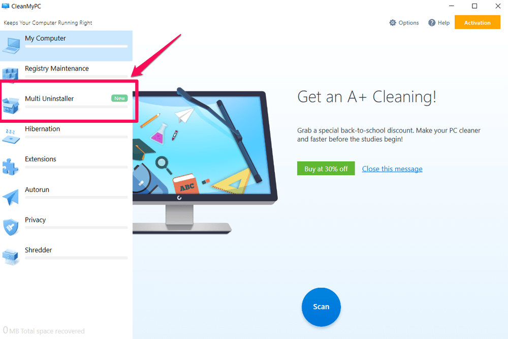 Zodra u het programma hebt geïnstalleerd, opent u het. Kies in de zijbalk aan de linkerkant 'Multi Uninstaller'.