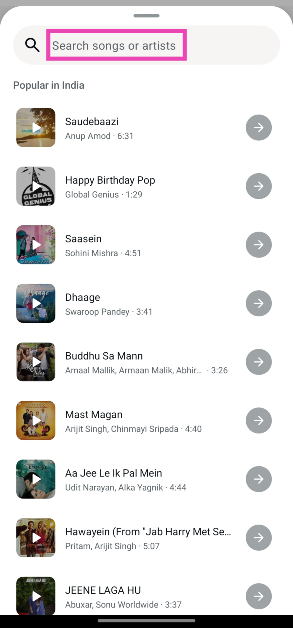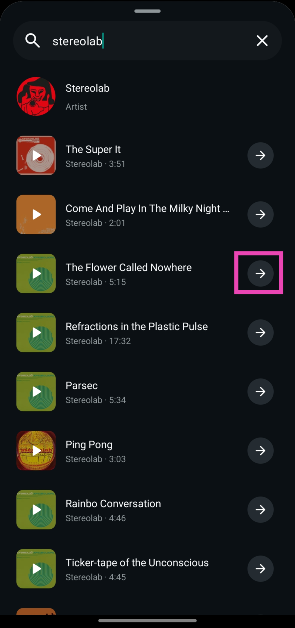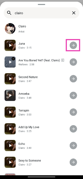 Stap 5:Voer de naam in van eenliedjeof eenartiestin de zoekbalk.