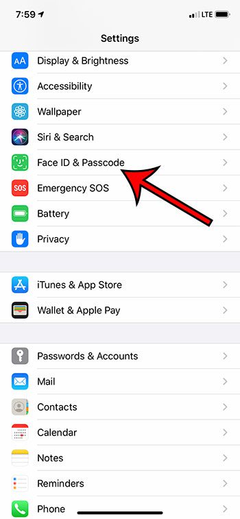 Stap 2: Scroll naar beneden en kies deFace ID en toegangscodeoptie.