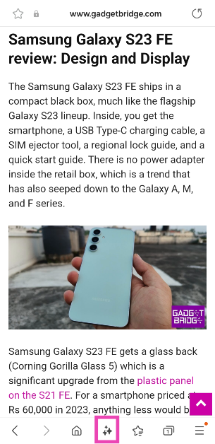 Open het nieuwsartikel in de eigen browser van Samsung, klik op het Galaxy AI-pictogram onder aan het scherm en tik op 'Samenvatten'.