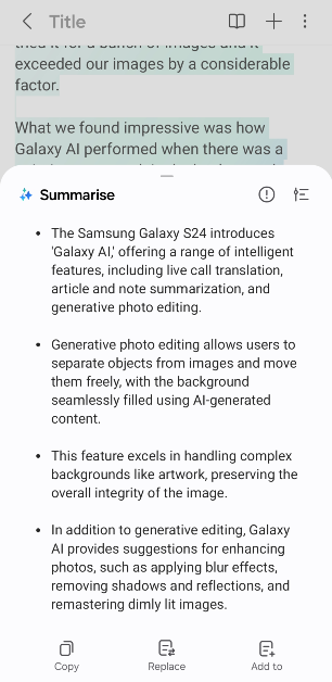 Bij de nieuwe Galaxy S24-serie draait alles om de AI-functies. Hoewel het zijn uitzonderlijke prestaties (dankzij de Snapdragon 8 Gen 3 SoC) en een krachtige set camera's voortzet, is de geïntegreerde AI-technologie waar het nieuwe wegen inslaat en zich onderscheidt van de Galaxy S-serie uit het verleden. We hebben het gehad over de generatieve fotobewerkingsfuncties van de Galaxy AI, dus laten we onze aandacht richten op de samenvattingsfuncties.