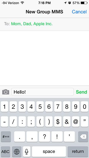 Dit werkt op dezelfde manier als een sms-bericht aan een individu, maar wordt in plaats daarvan gekopieerd naar alle contactpersonen die u opneemt.