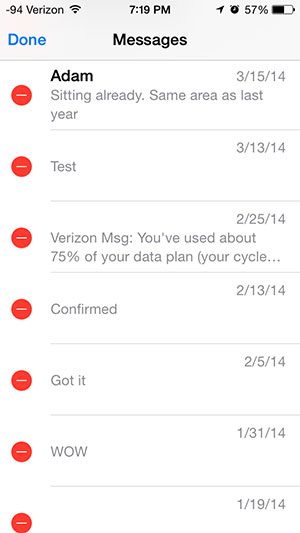 Stap 3: Tik op de rode cirkel links van het gesprek dat u wilt verwijderen.
