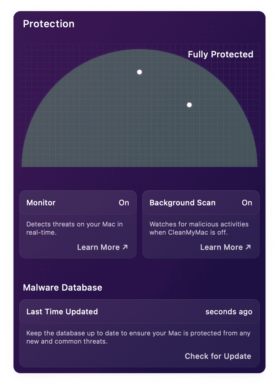 Nu draait CleanMyMac op de achtergrond en scant uw Mac periodiek op malware, zelfs als de app zelf niet geopend is.