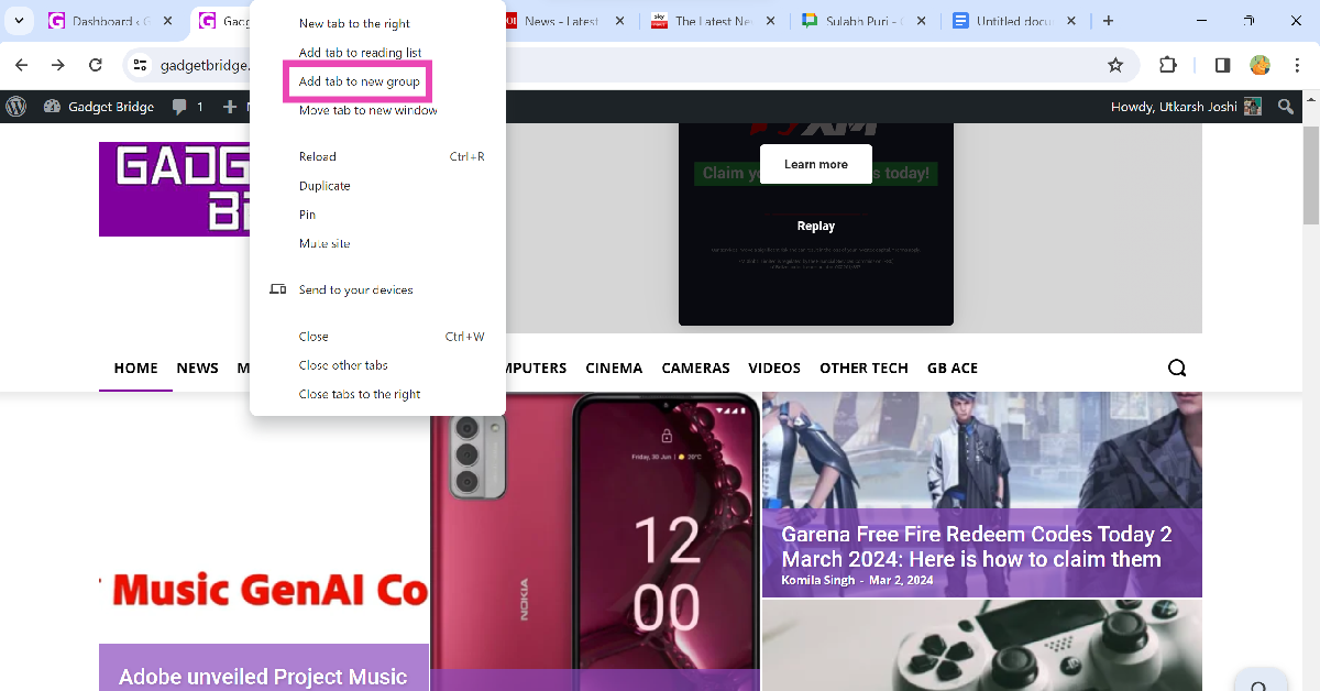 Stap 5:Klik met de rechtermuisknop op een tabblad en ga naarTabblad toevoegen aan een groep>Groepsnaamom het toe te voegen aan de door u geselecteerde groep.