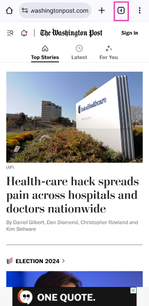 Stap 2:Raak depictogram van tabblad wisselen.