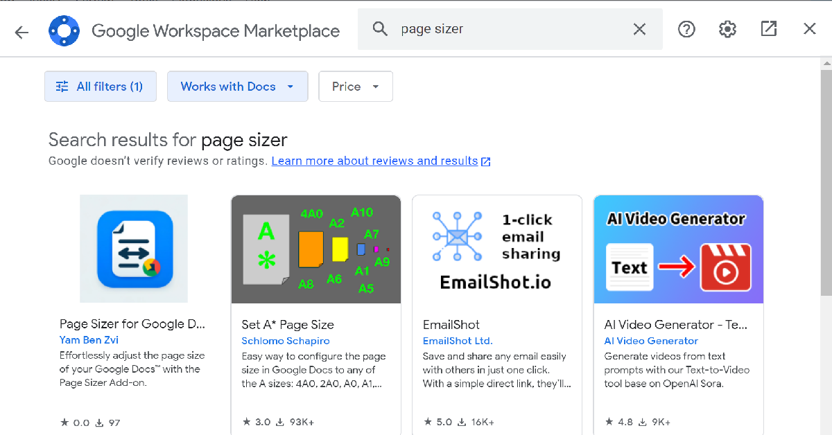 Stap 3:Zoeken naarPaginagrootteen installeer de add-on.