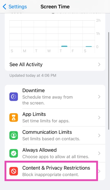 Stap 2:Tik opInhouds- en privacybeperkingen.