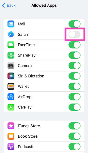 Stap 5:Schakel detuimelschakelaarvoor de beperkte app.