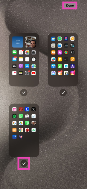 Druk lang op een lege plek op het startscherm, tik op de stippen onderaan de pagina, schakel de cirkel onder het startscherm uit die je zichtbaar wilt maken en klik op ‘Gereed’.