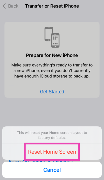 Stap 5:Tik opStartscherm opnieuw instellen.