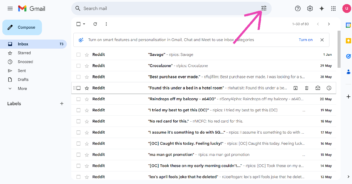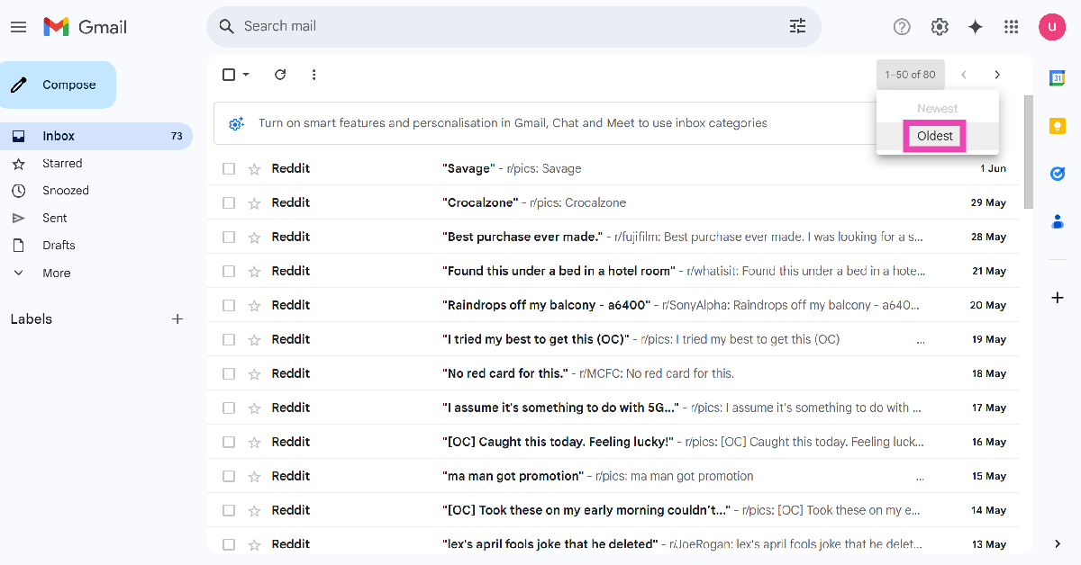 Hoe ga ik naar de oudste e-mail in mijn Gmail-inbox?