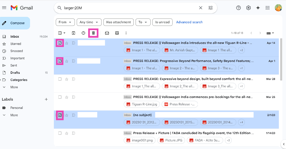 Verwijder e-mails met grote bijlagen