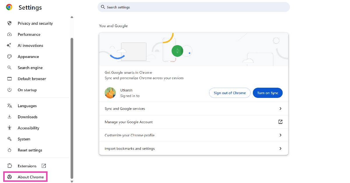Stap 3:SelecteerOver Chroomvoor de zijbalk.