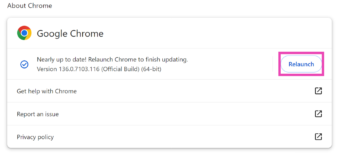 Stap 4:Google Chrome downloadt automatisch alle openstaande updates. Zodra de updates zijn gedownload,opnieuw opstartende webbrowser.