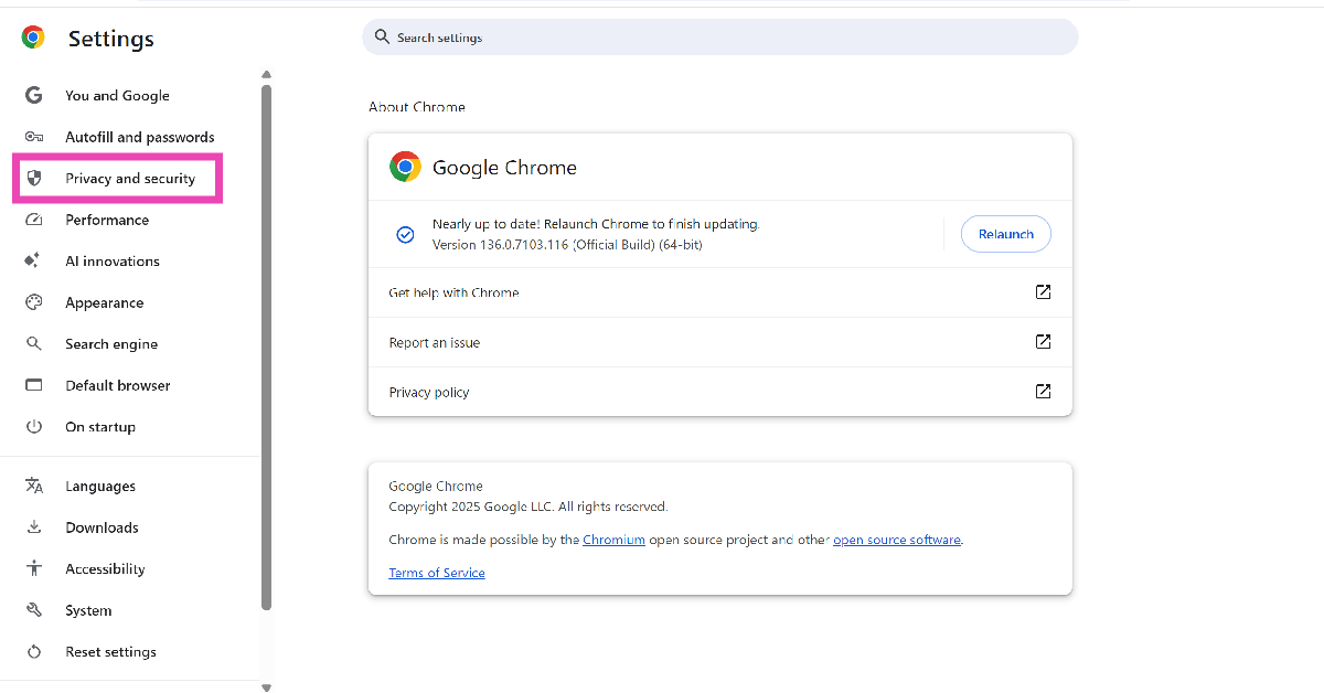 Stap 2:Ga naarPrivacy en veiligheid.