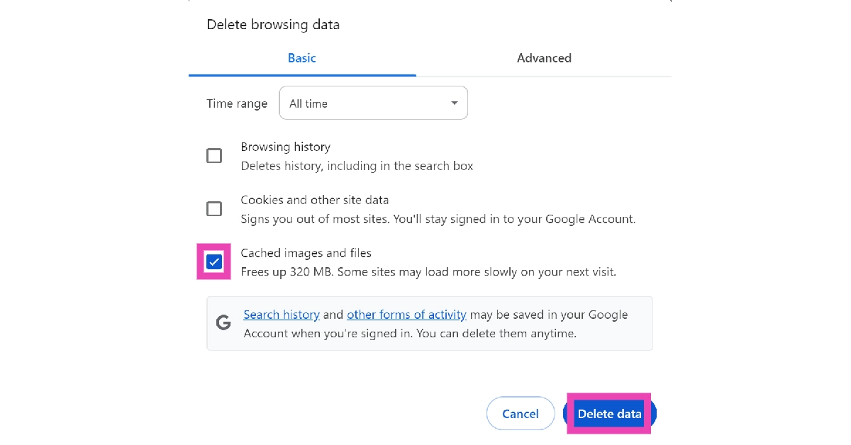 Een grote cache kan uw Gmail-inbox vertragen. Omdat Google Chrome niet de mogelijkheid biedt om de cache van een individuele website te wissen, moet u het volledige cachegeheugen van de browser wissen. Hiermee wordt u niet afgemeld bij uw accounts.