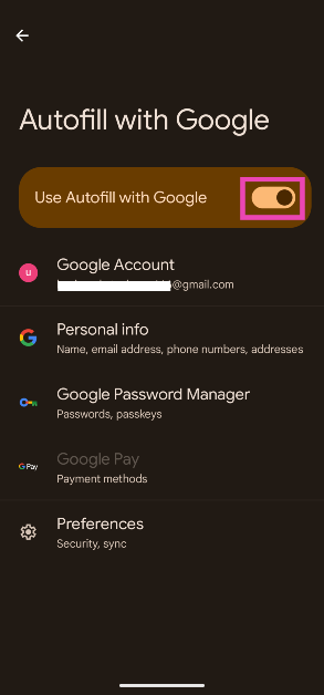 Ga naarInstellingen>Wachtwoorden, wachtwoordsleutels en accounts>Googleen zet de tuimelschakelaar naast ‘Gebruik automatisch aanvullen met Google’ aan.