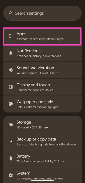 Stap 1:Ga naarInstellingenen selecteerApps.