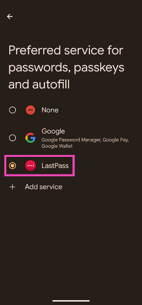 Als u een app voor wachtwoordbeheer van derden gebruikt, zorg er dan voor dat deze is ingesteld als de standaardapp voor het automatisch invullen van uw wachtwoorden.