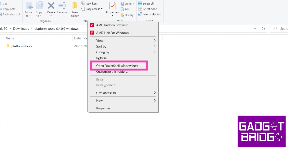 Stap 8:Pak het pakket uit naar de gewenste locatie. Druk opShift + klik met de rechtermuisknopen selecteerOpen hier het PowerShell-venster.