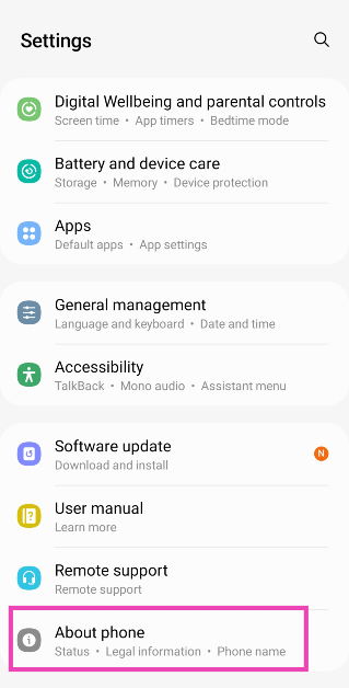 Stap 1:Ga naarInstellingenen selecteerOver telefoon.