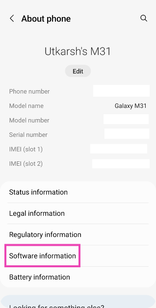 Stap 2:Tik opSoftware-informatie.