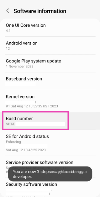 Stap 3:Vind deBouwnummeren tik er 7 keer op. Je komt dan binnenOntwikkelaarsmodus.