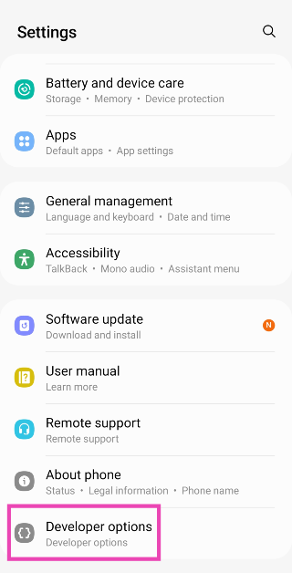 Stap 4:Ga terug naarInstellingenen selecteerOpties voor ontwikkelaars.