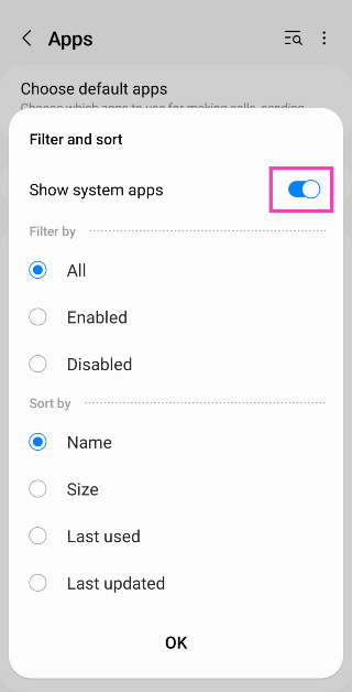 Stap 2:Tik op het optiemenu en selecteerSysteem-apps tonen.